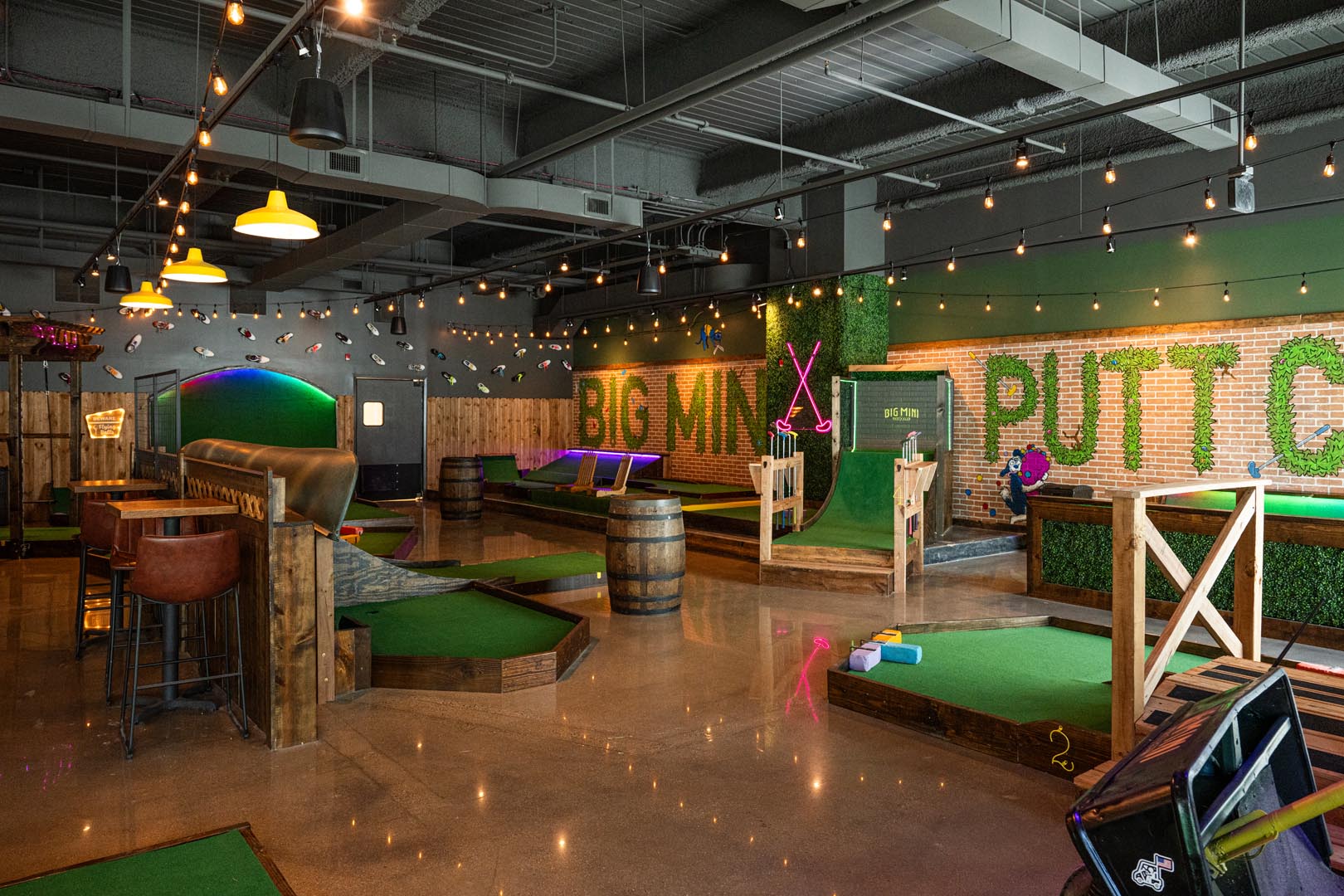 We believe that mini golf is for everyone, which is why you don’t need to be a local pro to have fun at the Big Mini. The 9-hole courses were designed and built by the Big Mini team to be challenging yet fun for all skill levels…and perhaps slightly more challenging depending on how many Peachy Palmers you’ve consumed before or during your round.