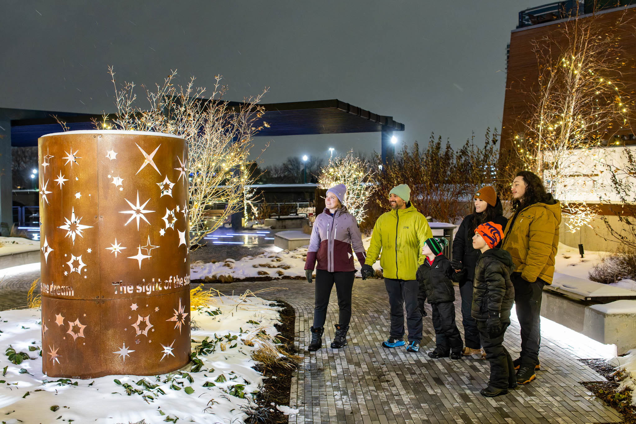 Starlight is a captivating steel structure illuminated by dynamic lighting that brings the words “The sights of the stars make me wanna dream” to life. As the lights pulse and shift, the installation invites viewers to reflect on the beauty and vastness of the night sky.