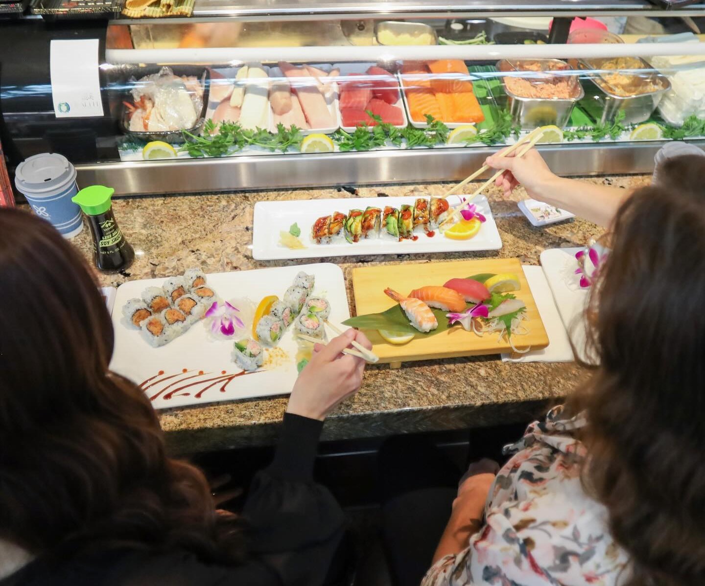 Sushi Market serves fresh sushi classics like the California Roll, the Philadelphia Roll, and the Spicy Tuna Roll, along with a few fan-favorites like the delicious Pink Lady Roll! Order sushi, maki rolls, sashimi, and seaweed salad all made on-site, while sitting at the sushi bar.