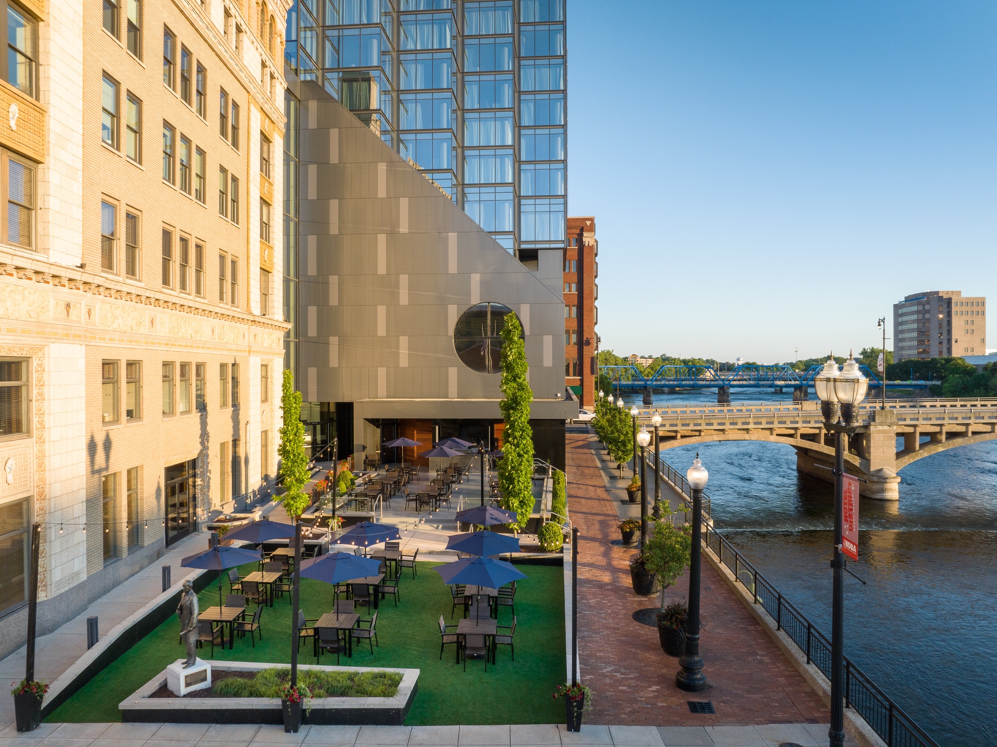 Made-from-scratch comfort fare meets authentic global classics in the kitchen of the world’s first celebrity chef, Wolfgang Puck. Known for his genuine warmth and love of craft, Wolfgang offers gourmet pizzas, appetizers, salads, noodles and entrées in this casual and inviting restaurant. Pair your meal with a signature cocktail or enjoy a glass of wine in our bar or outdoor patio overlooking the tranquil Grand River.